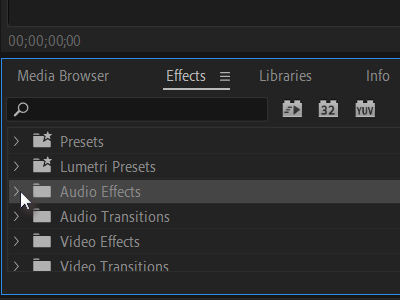![]() Potem pa v zavihku Effects odpirte Audio Effects. |