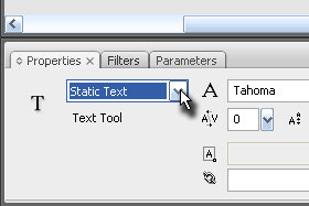 Spodaj v oknu Properties določite preko izbirnika Static Text (glej sliko).