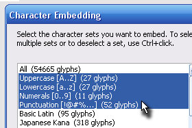 V oknu Character Embedding označite Uppercase, Lowercase, Numerals in Punctuation (glej sliko).