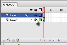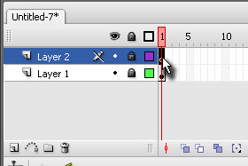 Označite sedaj Frame 1 za layer 2 (glej sliko).