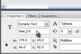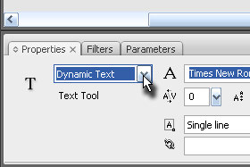 Spodaj v oknu Properties določite preko izbirnika Dynamic Text (glej sliko).