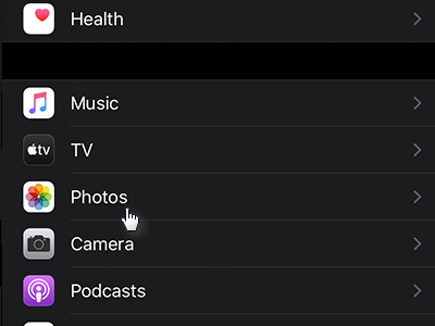 ![]() Vrnite se na osnovno stran nastavitev in izberite tokrat Photos. |