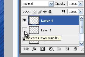 ![]() Sedaj bomo prej ustvarjene črte skrili, zato kliknite na ikonco z očesom, ki predstavlja vidnost layerja (glej sliko). |