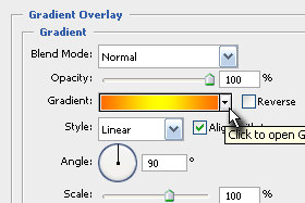 ![]() Kliknite na Gradient Overlay in v novih nastavitvah izberite preko izbrinika preliv, ki sem ga izbral tudi sam. |