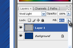 ![]() Layerju (plasti) določite senčenje na Vivid Light in Fill na okoli 45% (glej sliko). |