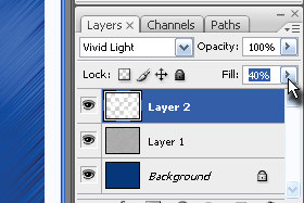 ![]() Layerju (plasti) določite senčenje ponovno na Vivid Light in Fill na okoli 40% (glej sliko). |