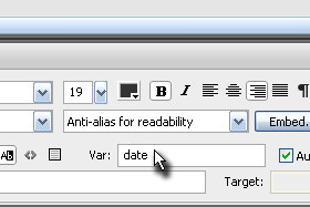 Spodaj v oknu Properties v v polje Var vpišite date (glej sliko).