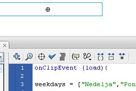 onClipEvent (load){ weekdays = ["Nedelja","Ponedeljek","Torek", "Sreda","Četrtek","Petek","Sobota"]; months = ["Januar","Februar","Marec","April","Maj","Junij"," Julij", "Avgust", "September", "Oktober"," November","December"]; } onClipEvent (enterFrame){ myDate = new Date(); tDay = weekdays[myDate.getDay()]; tMonth = months[myDate.getMonth()]; tDate = myDate.getDate(); tYear = myDate.getFullYear(); date = tDay+", "+ tMonth+" "+tDate+", "+tYear; } |