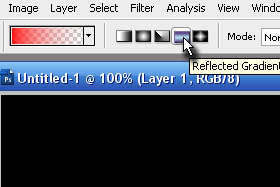 ![]() Zgoraj označite Reflected Gradient in preko izbirnika določite preliv med rdečo in transparentno barvo (glej sliko). |