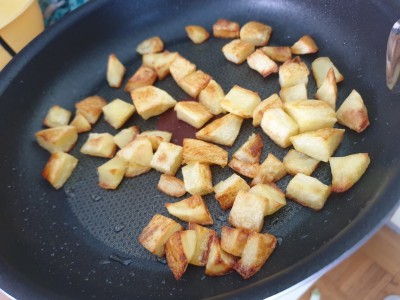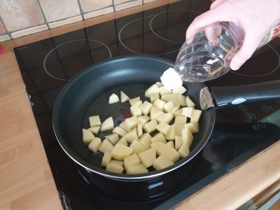 Ko bo krompirček pečen, bo dobil lepo zlato barvo (glej sliko).