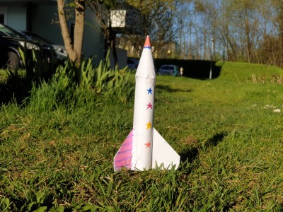![]() In raketa je poletela. Seveda lahko izstrelitev naredite večkrat. Potrebujete le gorivo, torej vodo in šumeče tablete. |