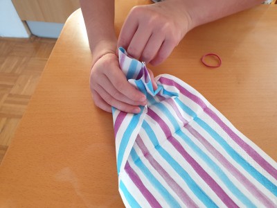 Torej, potrebujemo dve gumici in en papirnat prtiček.