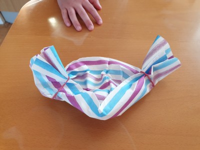 ![]() Papirnat prtiček razprite enkrat in na eni strani naredite zavihek kot sem ga jaz. |