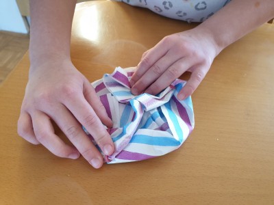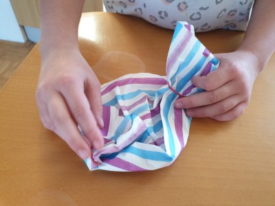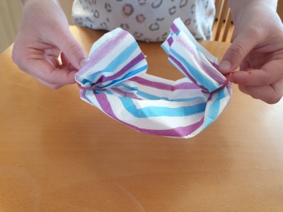 ![]() Sedaj pa eno stran zavihajte navznoter (glej sliko). |