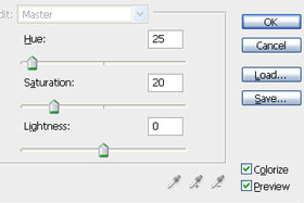 Hue nastavite 25, Saturation 20 in potrdite na gumb OK. |