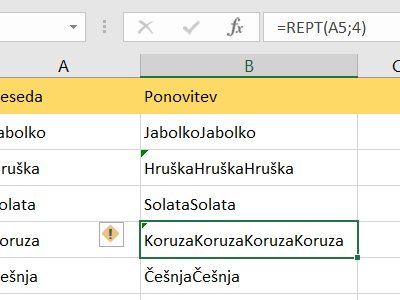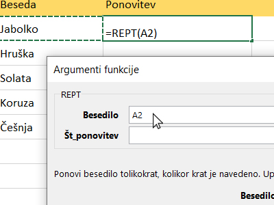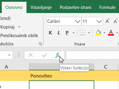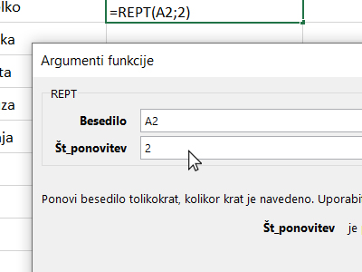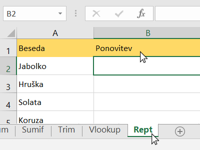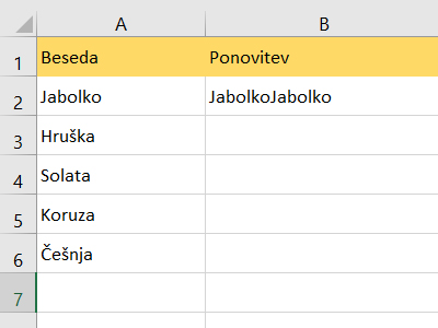 Kliknite nato v celico, kjer boste podvojili vrednost iz sosednje celice (glej sliko).