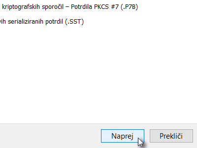 ![]() Nato označite certifikat, ki ga želite dodati in kliknite na gumb Odpri. |