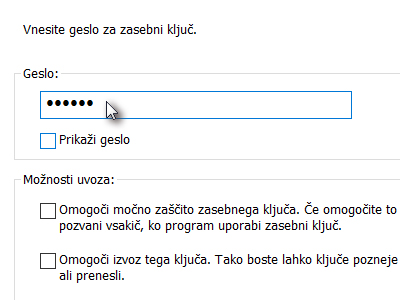 ![]() Vpišite geslo, ki ste ga pri izvozi ali ustvarjanju nastavili ter potrdite. |