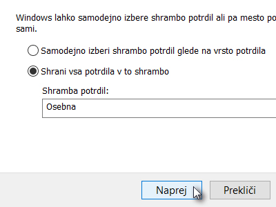 ![]() Kliknite na Naprej. Jaz sem mapo shrambe pustil privzeto. |