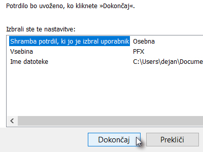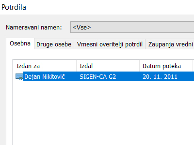 ![]() Certifikat je dodan. V mojem primeru sem dodal SIGEN-CA certifikat, s katerim lahko marsikaj upravljam brez obiskovanja občine. Sem tudi s pomočjo Photoshopa prilagodil datum zaradi varnosti.