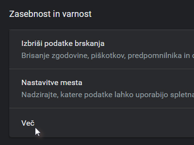 ![]() V novem oknu v polju Zasebnost in varnost kliknite na Več. |