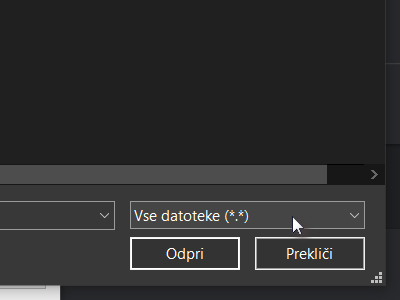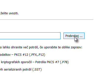 ![]() V oknu razsikovalca najprej označite Vse datoteke (glej sliko). Ker imajo certifikate različna imena datotek, je ta ukrep dostikrat potreben. |