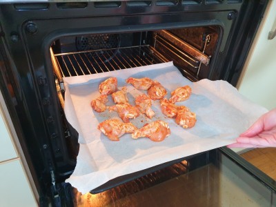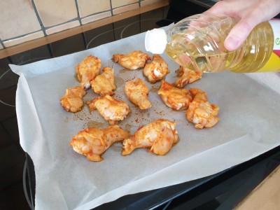 Pripravljene perutničke malenkost naoljite, da se bodo lepo zapekle. |