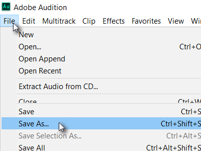 ![]() V Adobe Audition kliknite na File, izberite Open Append in izberite To New...