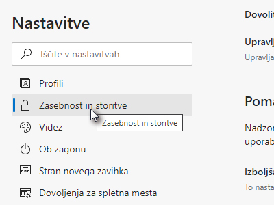 ![]() V oknu z nastavitvami kliknite na Zasebnost in storitve. |