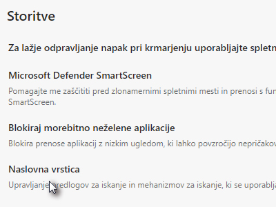 ![]() Prikažejo se vam vse nastavitve za zasebnost in storitve, kjer čisto na dnu strani kliknete na Naslovna vrstica. |