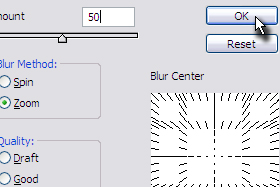 Nastavite Amount na 50, Blur Method na Zoom, Quality pa na Best. |