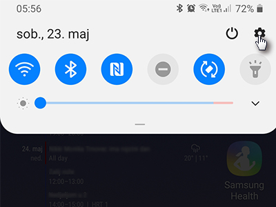 Povlecite vrstico za obvestila in tapnite na ikono za nastavitve.