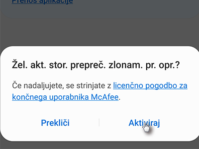 ![]() Ko vas telefon vpraša, če želite aktivirati zaščito, tapnite na Aktiviraj. |