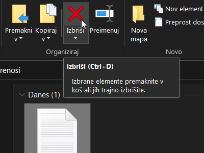 ![]() Nastavitev je nastavljena. Označite ponovno neko datoteko ali mapo ter jo pobrišite. |