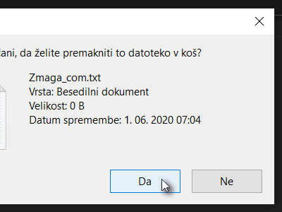![]() Windows vas bo po novem vprašal, ali ste prepričani za brisanje in boste morali potrditi. |