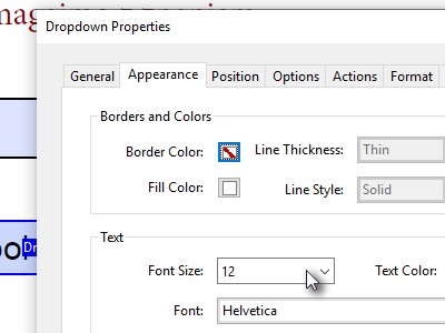 ![]() Vsako polje, ki ste ga dodali, lahko označite, kliknete nanj z desnim miškinim gumbom in izberite Properties. V tem oknu pa imate več možnosti za urejanje, med drugim pisavo, velikost in lokacijo. |