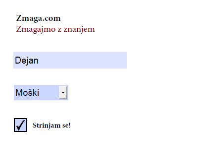 ![]() Jaz sem dodal še eno besedilo, kjer se uporabnik strinja. |