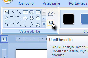 Tekst lahko dodajate tudi poljubno. V oknu Vstavi oblike izberite Polje z besedilom. |