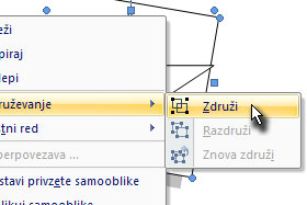 Z desnim miškinim gumbom kliknite na označene elemente, označite združevanje in izberite Združi.