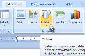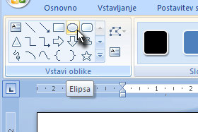 Kliknite sedaj na drugo obliko, ki se imenuje Elipsa (glej sliko).