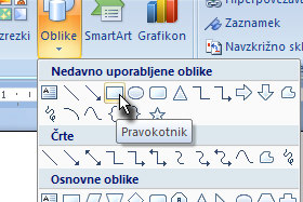 Kliknite nekje na prazen dokument in nato na pravokotnik, da bo označen.