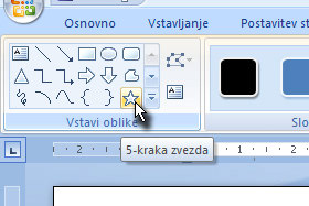 Kliknite na obliko 5-kraka zvezda (glej sliko)...