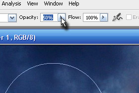 Zgoraj v orodni vrstici določite Opacity na 50% (glej sliko). |
