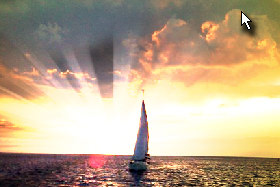 Potem pa z miško iz sredine svetlobe potegnite navzven ,da se ustvarili lep in topel preliv barv.