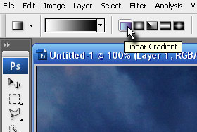 Zgoraj v orodni vrstici določite Linear Gradient. |