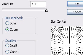 V novem oknu določite Amount na 100, Blur method Zoom in Quality Best. Potrdite na gumb OK. |