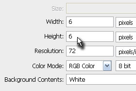 V novem oknu določite Width 6 in Height 6 pixels.