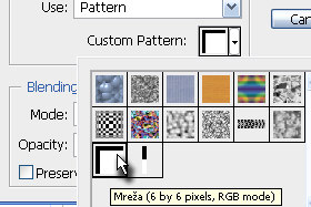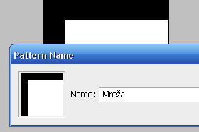 Pritisnite tipki CTRL + D, da izbrišete selekcijo. Kliknite zgoraj na Edit in zberite Define Pattern... V novem oknu v polje Name vpišite Mreža in nato potrdite na gumb OK. |