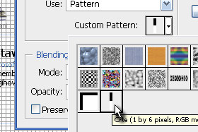 Kliknite zgoraj na Edit in izberite Fill... V novem oknu Use preko določite Pattern in nato spodaj preko izbirnika izberite vzorec Črte (glej sliko) in potrdite na gumb OK. |