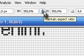 Pritisnite tipki CTRL + T in zgoraj v orodni vrstici označite Maintain aspect ratio (glej sliko) in nastavite širino na 550% (glej sliko).